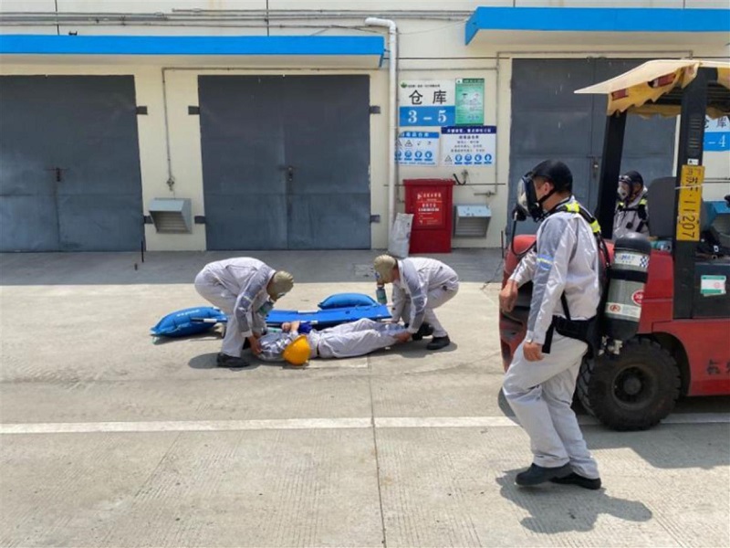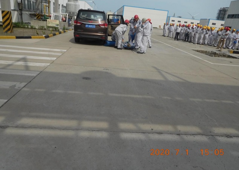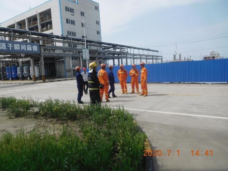 2020年7月1日,公司根据年初计划组织开展2020年度综合演练活动,并请园区消防中队参与协同演练。