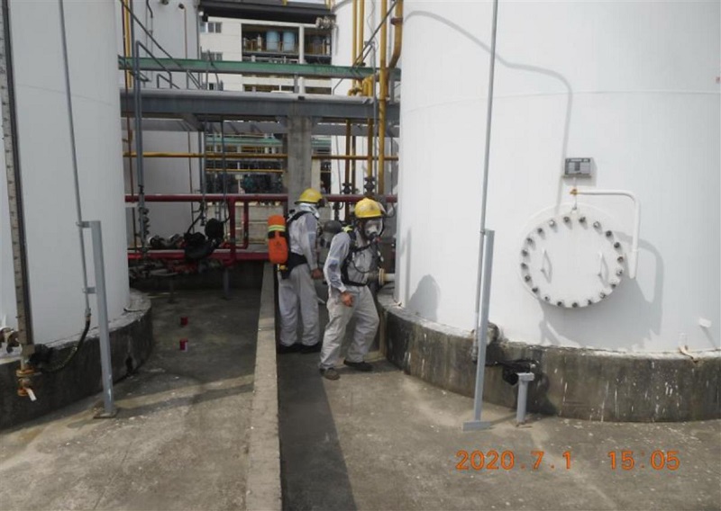 2、仓库人员进罐区检查泄漏情况
